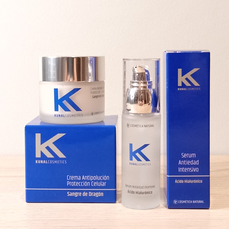 El set de bienvenida incluye un sérum antiedad intensivo, una crema antipolución protección celular y un set roll cuarzo